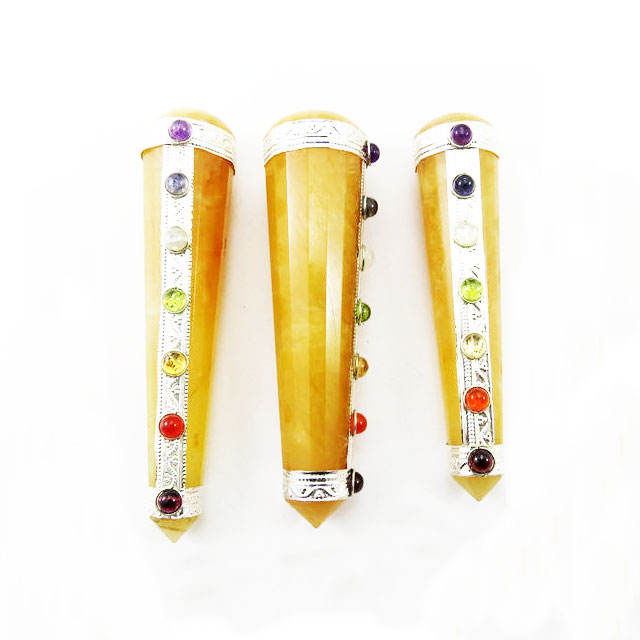 ไม้นวด Aventurine สีเหลืองกับจักระ Cab
