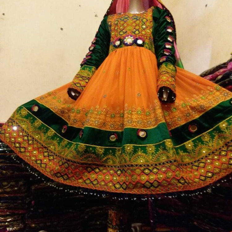 ชุดเดรสสีเหลืองแบบแบนจารา สวยงามมาก งานปักกระจก พร้อมลูกไม้ ชุดอัฟกานิสถานแบบใหม่ ขายดี