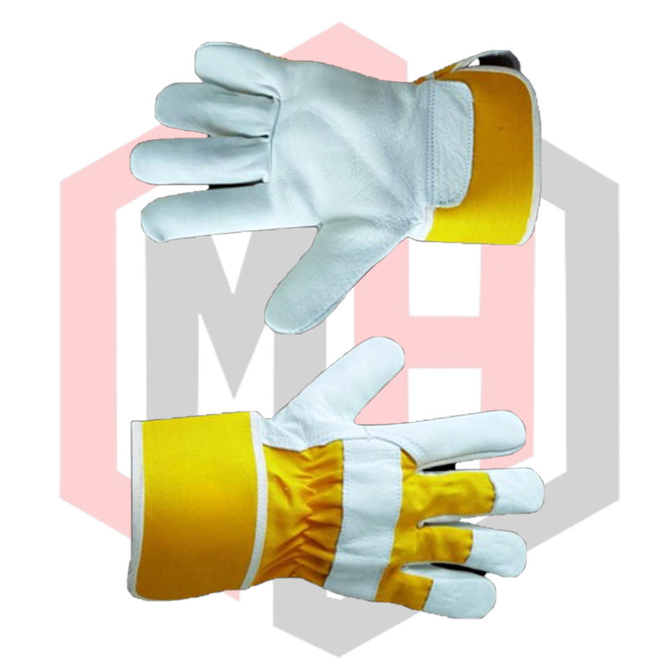 ถุงมือทำงานหนังแพะสีเหลืองเบจ ทนต่อการฉีกขาด ระบายอากาศได้ดี ป้องกันไฟฟ้าสถิต ฝ่ามือทำจากหนัง สำหรับดับเพลิง ปราศจากซิลิโคน ปราศจากแป้ง