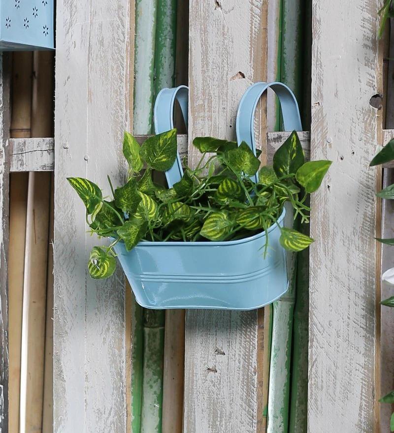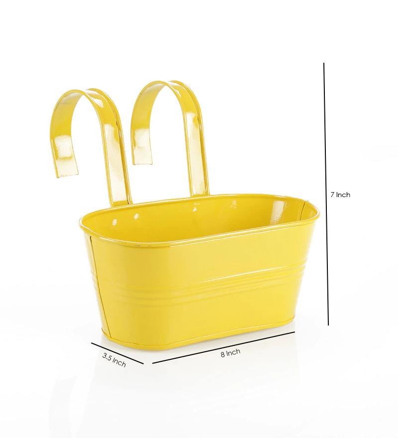 สีเหลืองและสีฟ้าเหล็กชุบสังกะสีรูปไข่ราวชาวไร่โลหะราวระเบียงชาวไร่สวนและระเบียงตกแต่ง