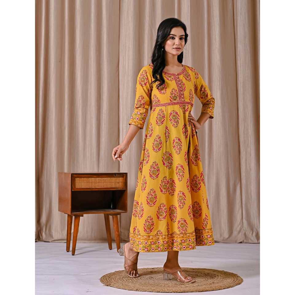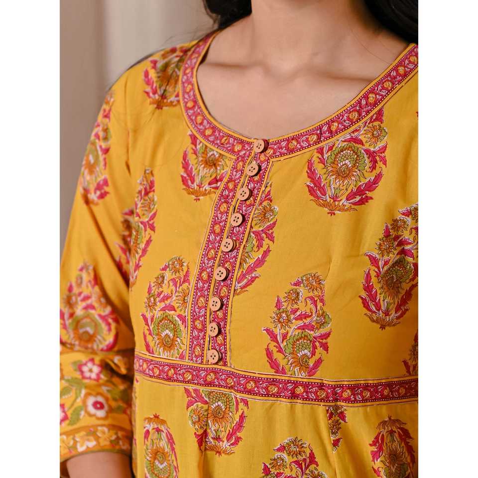 ชุดเดรสผ้าฝ้ายพิมพ์ลายบล็อกสีเหลืองสไตล์โบโฮ ยาวคลุมเท้า ติดกระดุม สวมใส่สบาย เหมาะสำหรับสาวออฟฟิศ ไซส์ 5XL ระบายอากาศได้ดี ผลิตตามแบบ ODM สำหรับใส่ไปเที่ยวคลับ