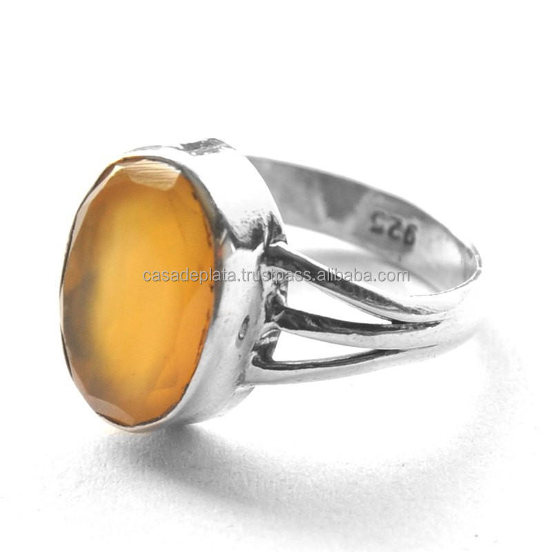 แหวนเงินแท้925เหลี่ยมเพชรพลอยรูปไข่สีเหลืองควอตซ์แหวนแฟชั่นทำมือสีสันสดใสขายส่งโดย Casa de Plata