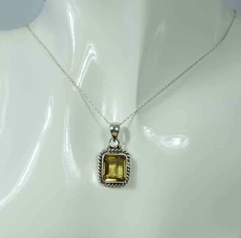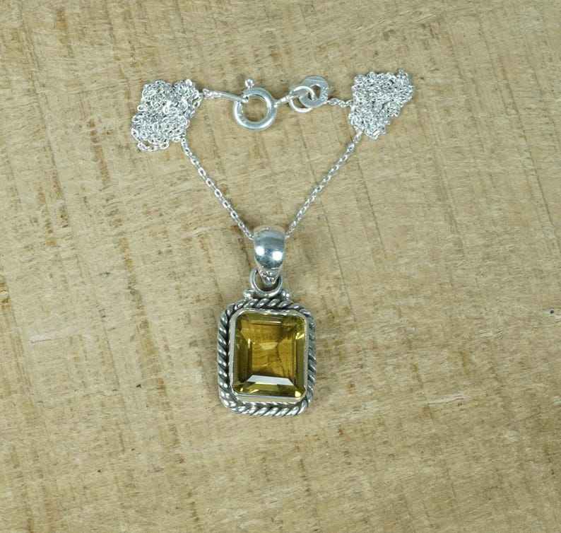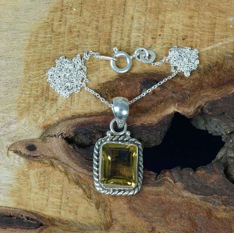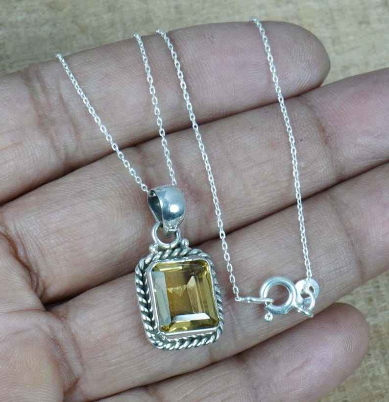 จี้อัญมณีสีเหลืองซิทรีน925อัญมณีเงินสเตอร์ลิงทำด้วยมือจี้เครื่องประดับชั้นดีและเครื่องรางสำหรับผู้หญิง