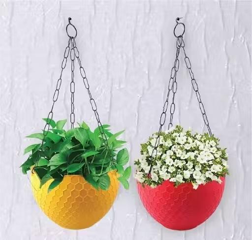 ที่แขวนกระถางต้นไม้ทำจากโลหะเคลือบสีเหลืองสำหรับตกแต่งบ้านและสวนแบบแขวนกระถางดอกสดพร้อมโซ่