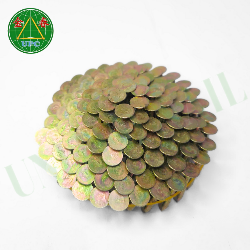Yellow Coating 1-1/4" X 0.120 Coil Roofing Nails 7200pcs Steel Ring Shank, Checkered/Flat Head for Roofing Projects From Vietnam
