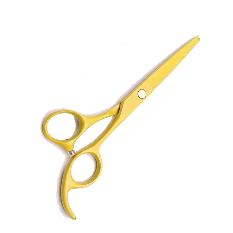 กรรไกรตัดผมเหล็กกรรไกรช่างตัดผมสีเหลืองเคลือบพร้อมที่วางนิ้วมือ