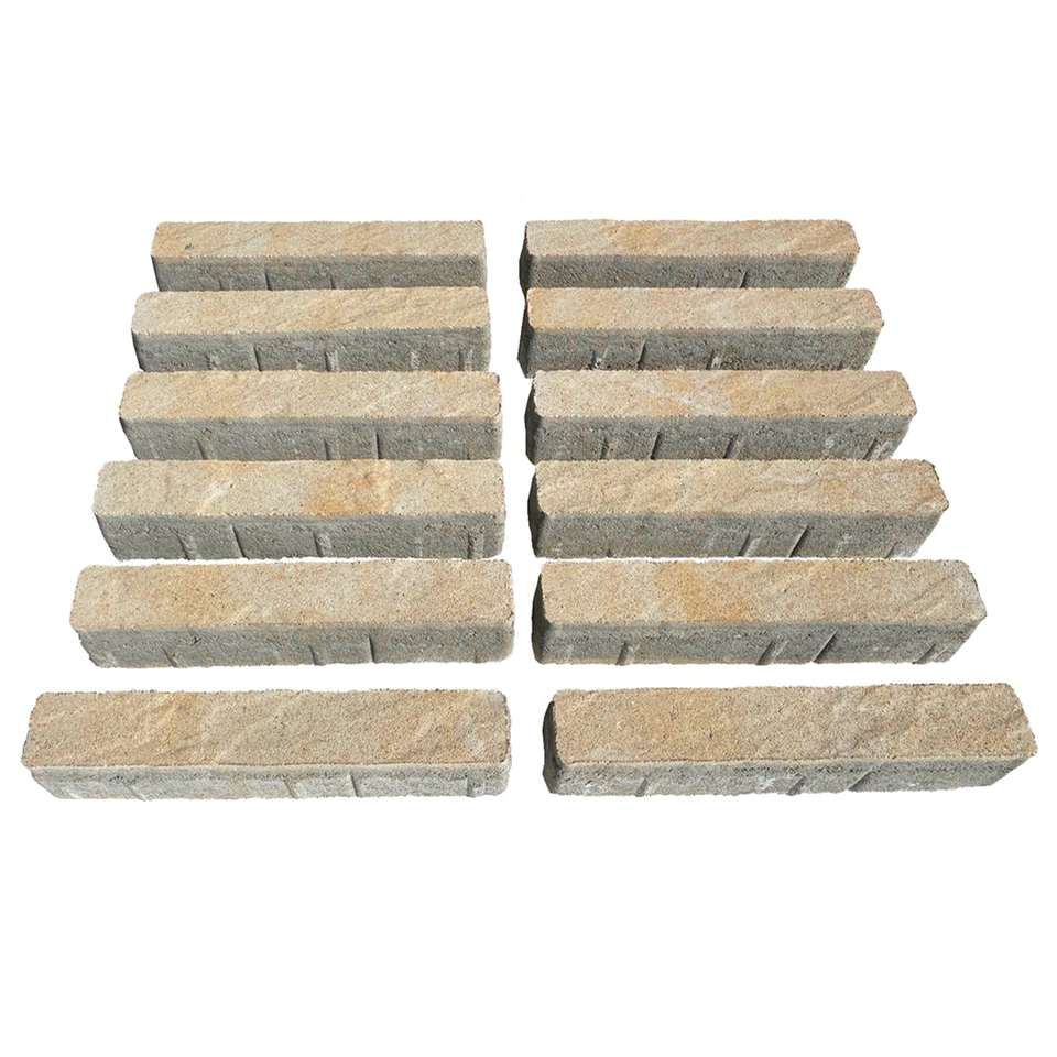 หินกรวดคอนกรีตสีเหลืองปูด้านนอกขอบสวนที่ทันสมัยด้วยอิฐสำหรับสนามหญ้าและสนามหญ้าเทียม