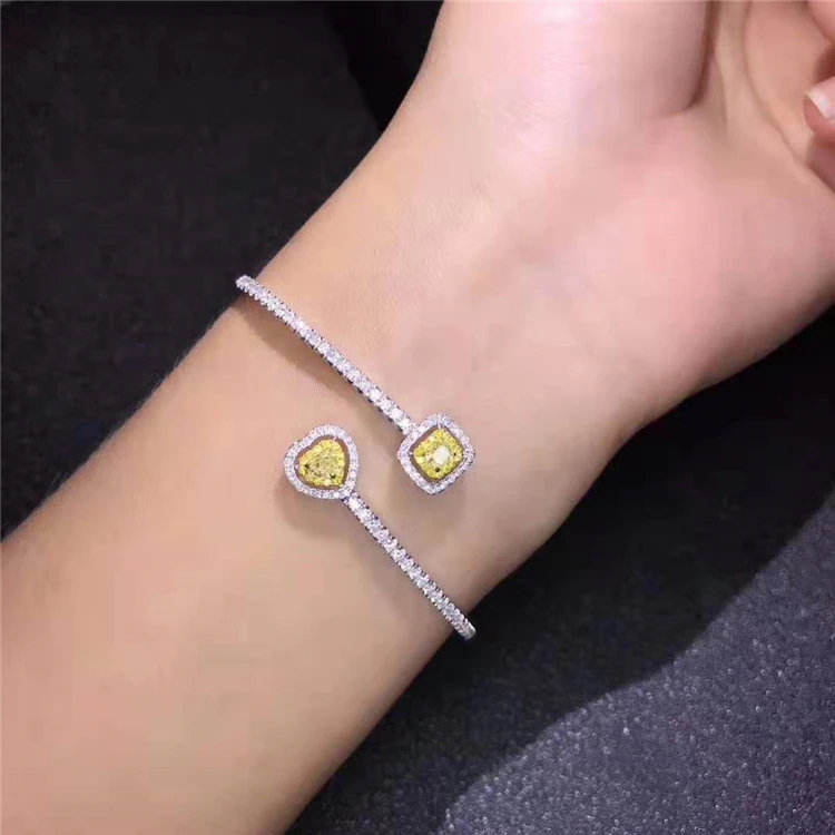 สร้อยข้อมือกำไลข้อมือ0.39ct เพชรสีเหลือง18K