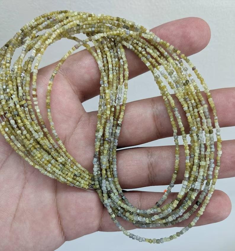 ลูกปัดเพชรสีเหลืองเพชรหยาบเครื่องประดับส่วนบุคคลเพชรที่ไม่เจียระไนของขวัญวันเกิด15นิ้วยาว2-3มม. ลูกปัดธรรมชาติไม่เจียระไน