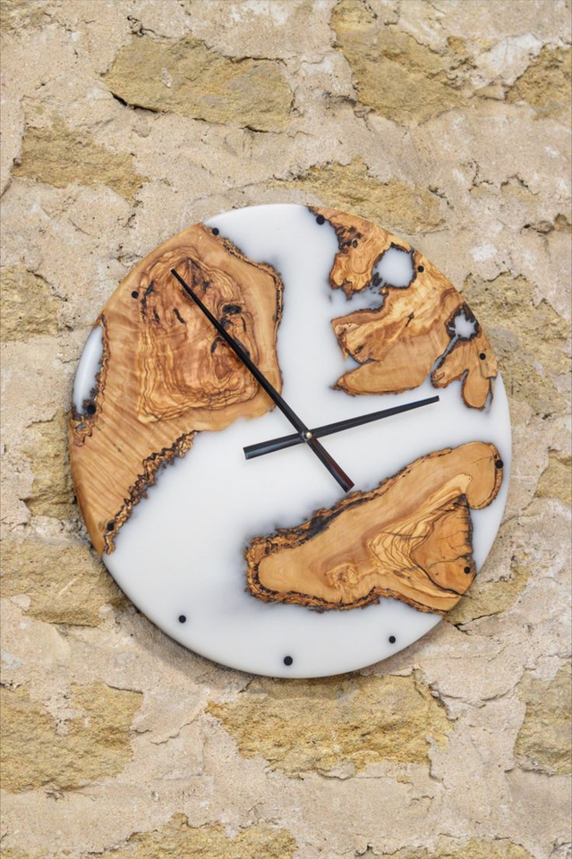 นาฬิกาแขวนผนังไม้เรซิ่นอีพ็อกซี่สีเหลือง ปรับแต่งได้ สไตล์เรียบง่าย นาฬิกาตกแต่งบ้าน ขายดี