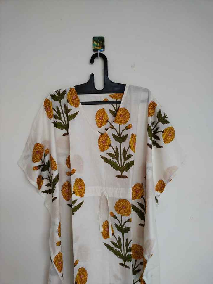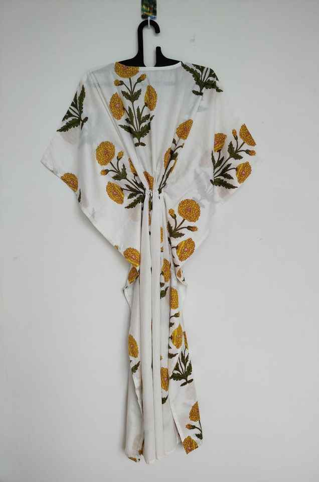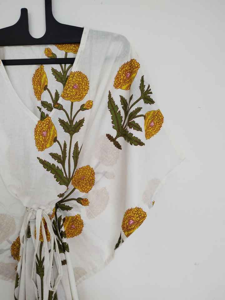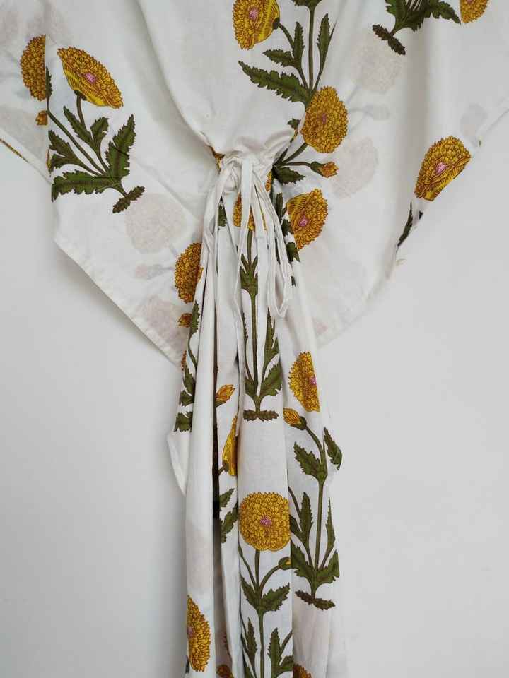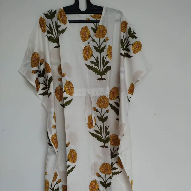 ชุดคลุมชายหาดผ้าฝ้ายลายดอกสีเหลืองสไตล์โบฮีเมียน น้ำหนักเบา สวมใส่สบาย เหมาะสำหรับชุดนอน
