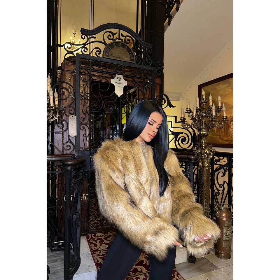 เสื้อแจ็คเก็ตขนสุนัขจิ้งจอกสีเหลืองลายสก็อตแบบโอเวอร์โค้ทตกแต่งสไตล์วินเทจพร้อมซิปปิดแบบกันน้ำ เสื้อเบลเซอร์แบบทอ