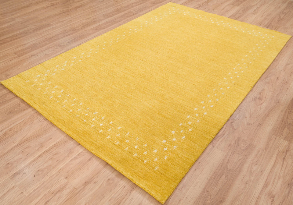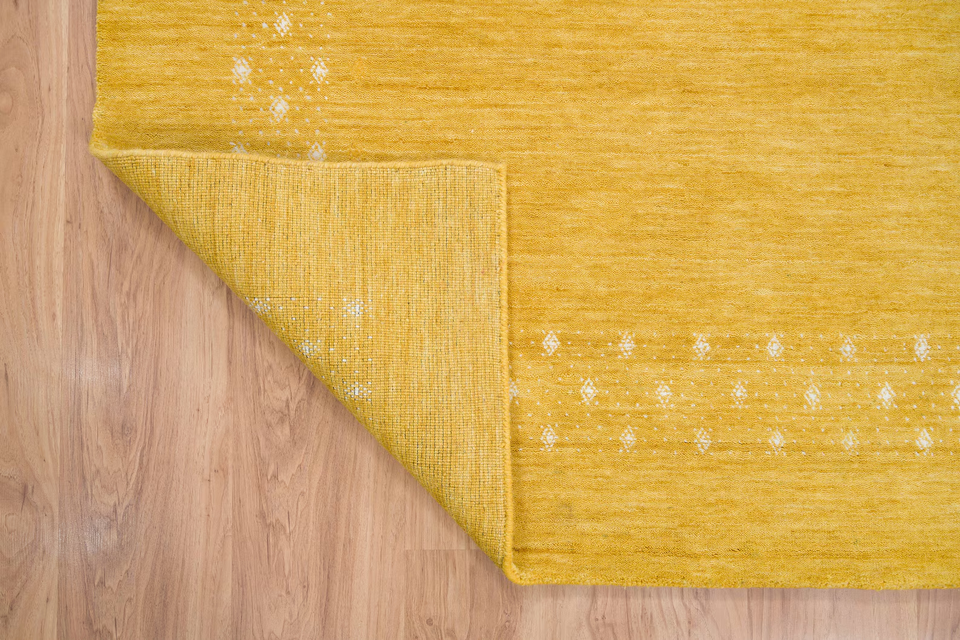พรมแก๊บเบ้สีเหลือง พรมขนสัตว์ทำมือ พรมตกแต่งบ้านสไตล์โมเดิร์นมินิมอล