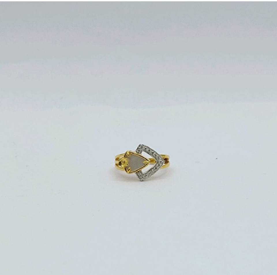 แหวนปลายลูกศรสีทองเหลืองประดับด้วยเคลือบสีขาวและเพชรทรงเชฟรอน พร้อมลวดลายดอกไม้สุดหรู เครื่องประดับชั้นดี