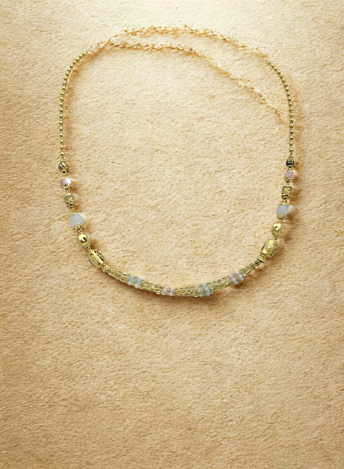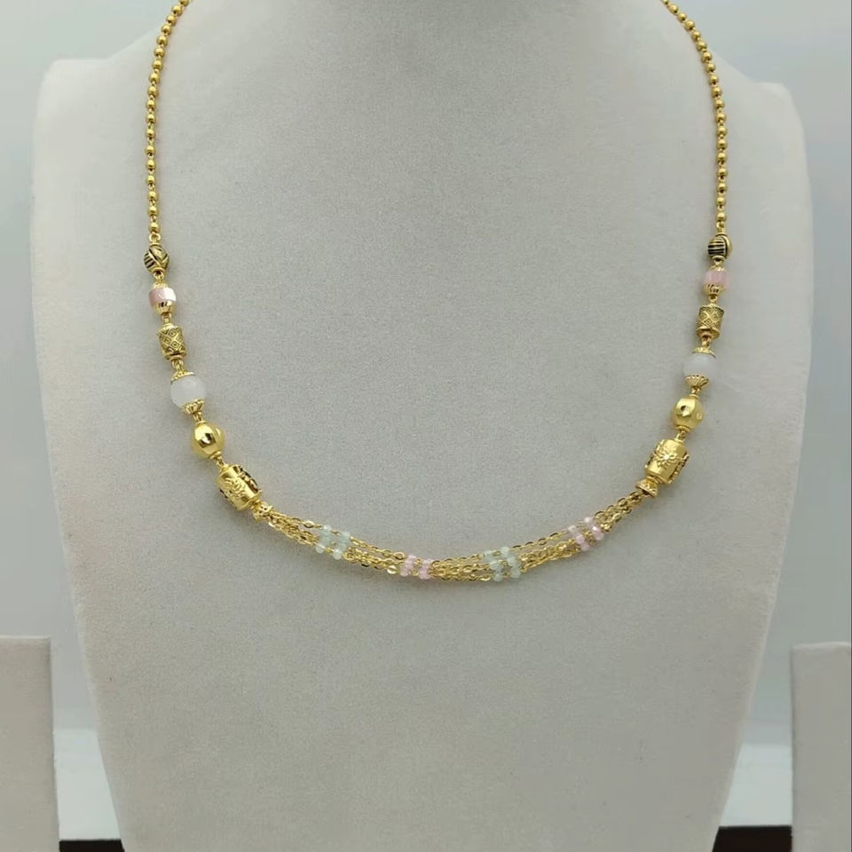 สร้อยคอประดับลูกปัดสีเหลืองทองพร้อมโซ่หลายเส้นและประดับด้วยอัญมณีสีพาสเทล เครื่องประดับชั้นดีแบบซ้อนทับสำหรับผู้หญิง