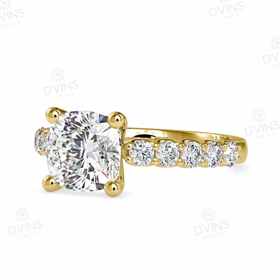 แหวนแต่งงานสี่แฉกประดับเพชรสีเหลืองทองประดับเพชรแบบคลาสสิกคลาสสิก