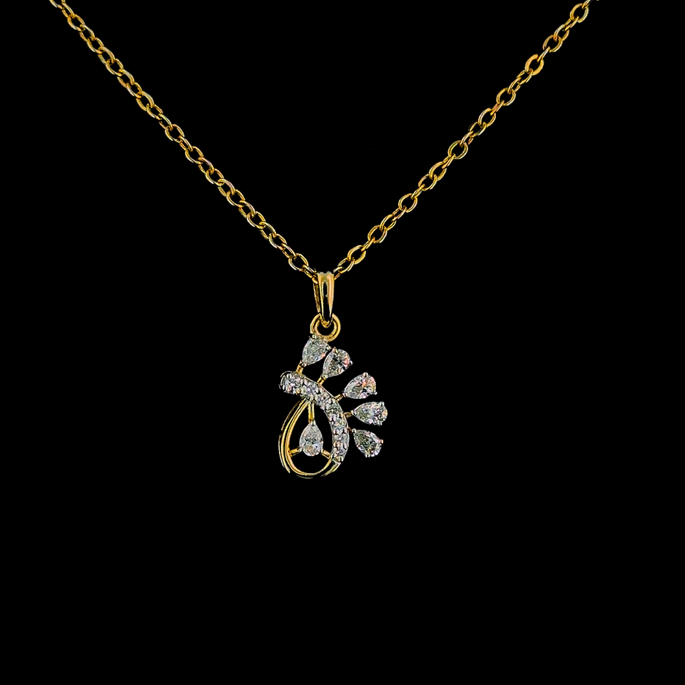 Yellow Gold Floral Lab Diamond Pendant Necklace, Pear Cut Diamond Drop Necklace for Women, Delicate Everyday Diamond Pendant