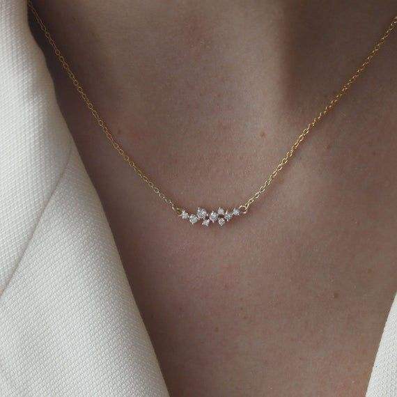 สร้อยคอแท่งเพชรสีเหลืองทองแบบมินิมัลลิสต์เครื่องประดับเพชรในแนวนอนทรงกลมตัดเป็นก้อนเครื่องประดับเพชรที่ใช้ในชีวิตประจำวัน