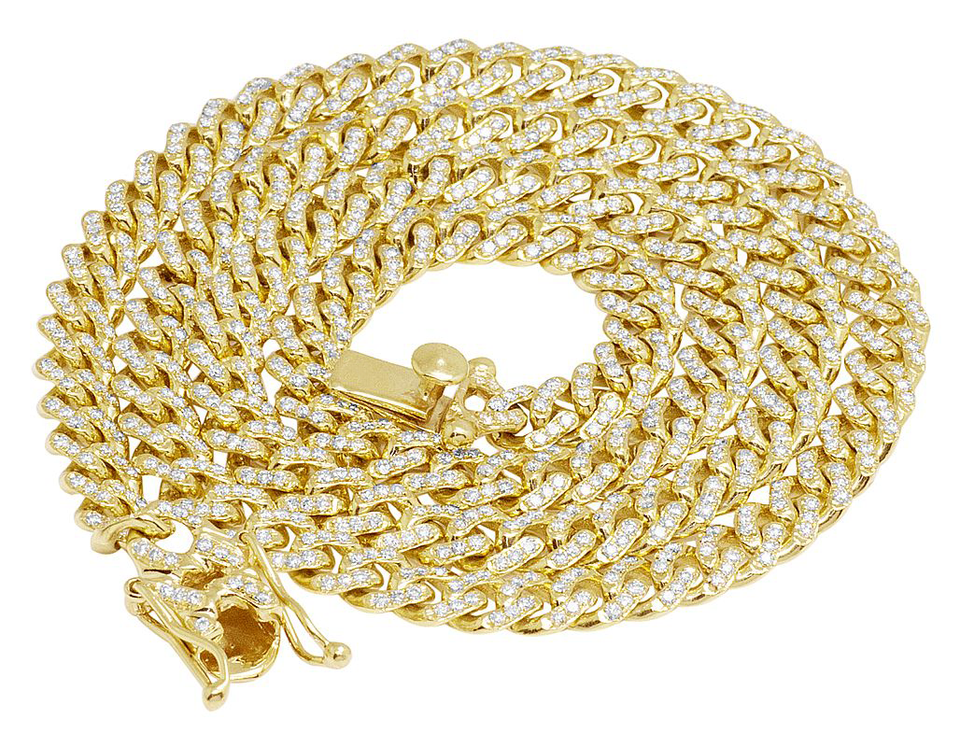 สร้อยคอจิวเวลรี่ชุบทองสีเหลืองสไตล์คิวบาแบบ S925เงินสเตอร์ลิงประดับเพชรแบบฮิปฮอปสุดหรู