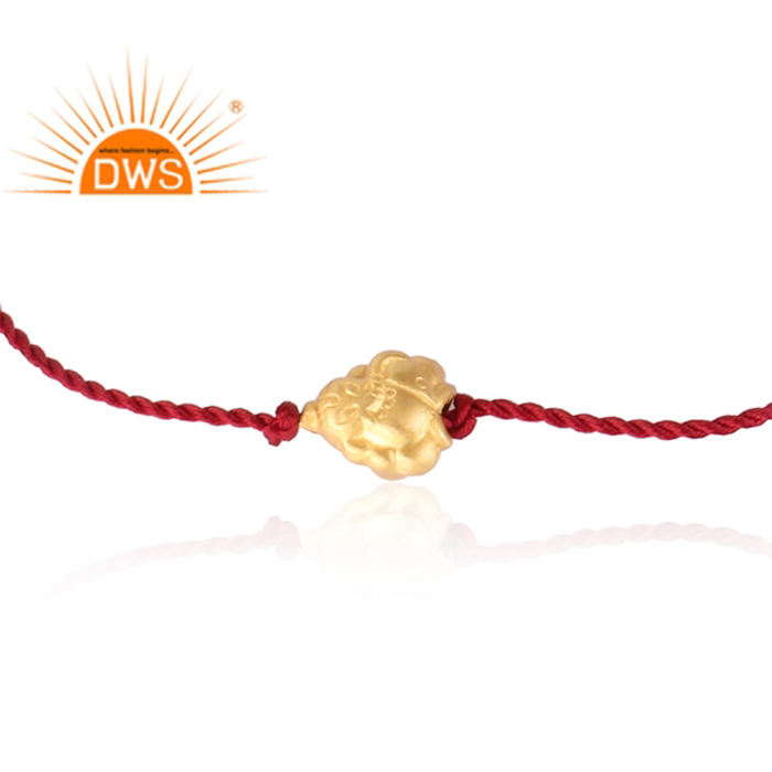 สร้อยข้อมือเชือกฝ้ายสีแดงเลือดหมูประดับพระพิฆเนศชุบทองคำขาวสำหรับผู้หญิง ของขวัญสำหรับเธอ