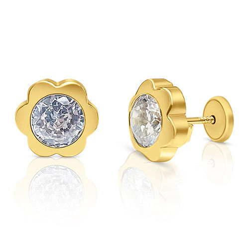 ต่างหูเม็ดเดี่ยวสีเหลืองทองแบบคลาสสิกดอกไม้ CZ ขนาด8.5มม. สำหรับเป็นของขวัญที่เหมาะกับชายและหญิง