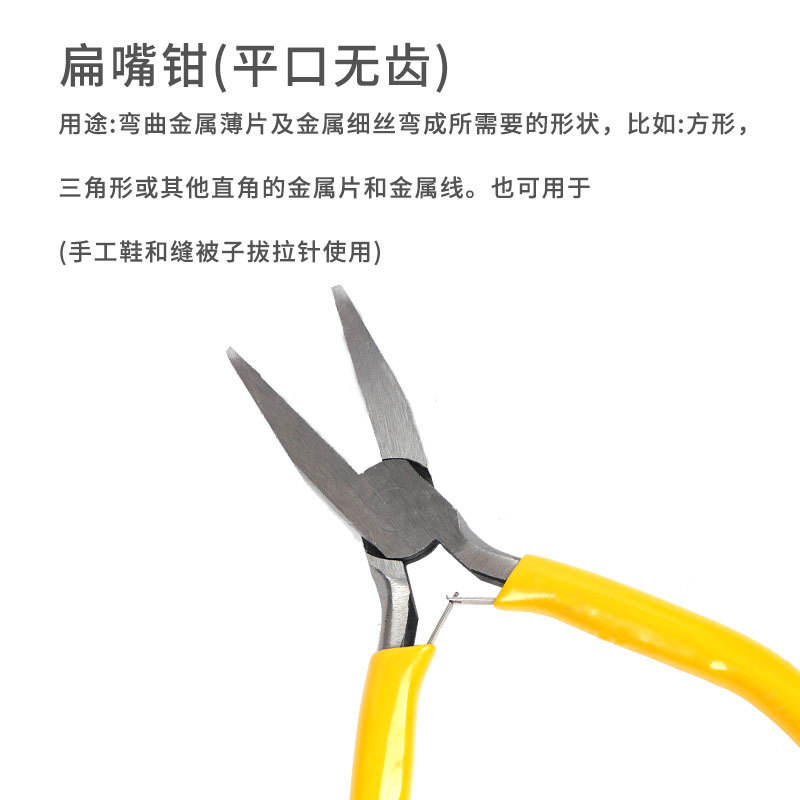 คีมปากแบนไร้ฟัน ด้ามสีเหลือง ขนาด 4.5 นิ้ว ผลิตจากเหล็กโครเมี่ยมวาเนเดียม ปากเรียบ สำหรับงานเครื่องประดับและงาน DIY