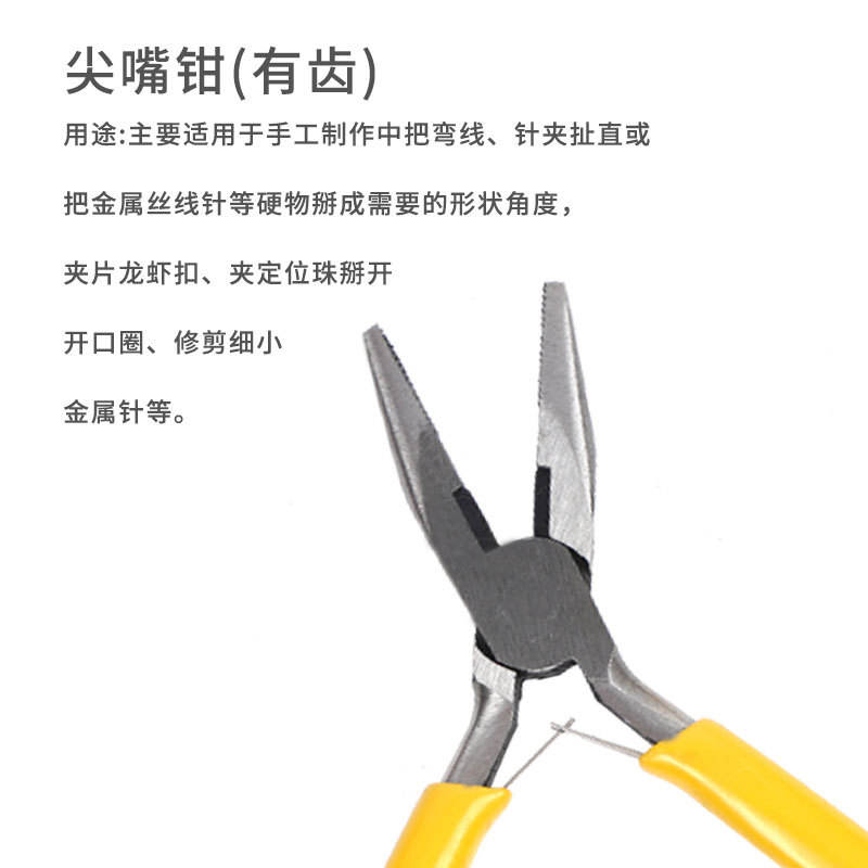 คีมปากแหลมด้ามเหลือง ขนาด 4.5 นิ้ว ผลิตจากเหล็กโครเมียมวาเนเดียม ปากหยักเล็ก สำหรับงานซ่อมแซม DIY