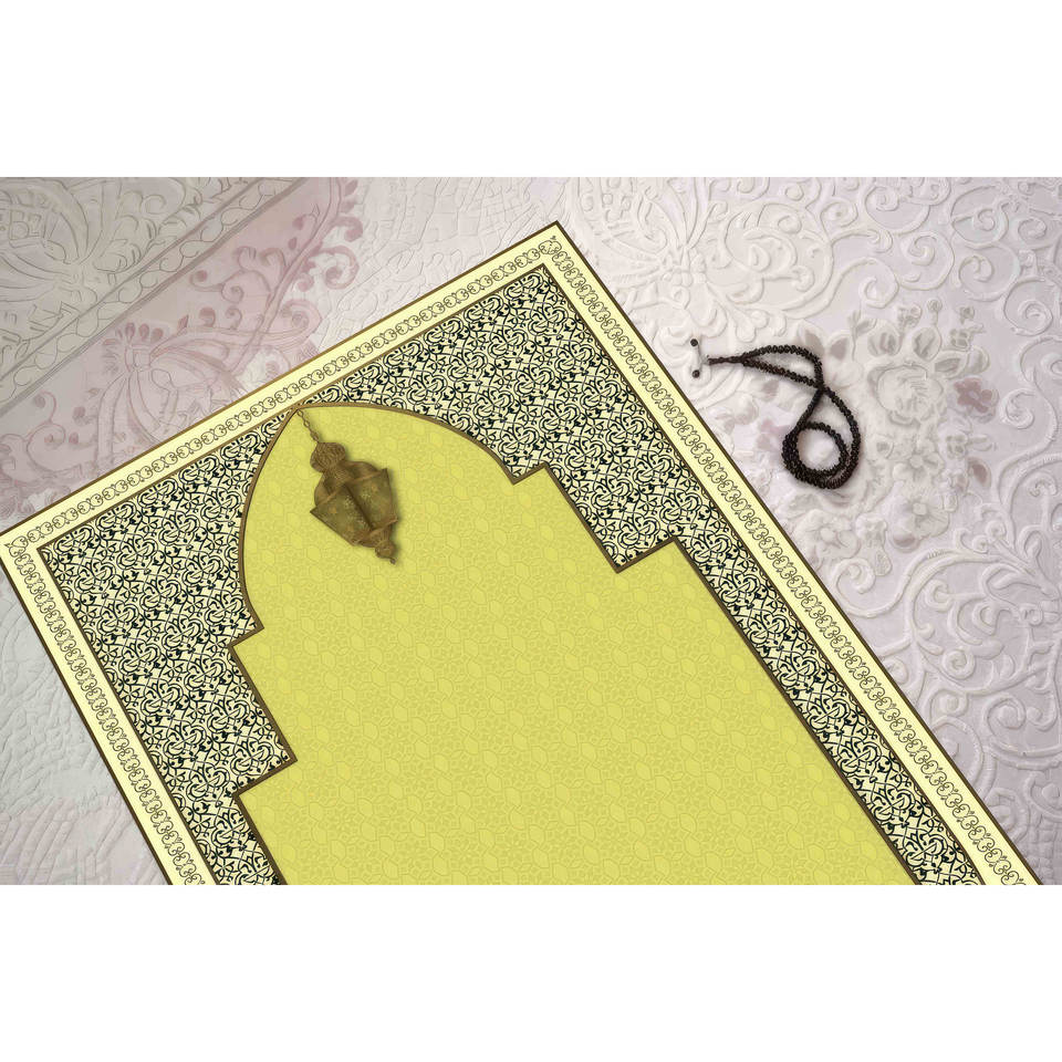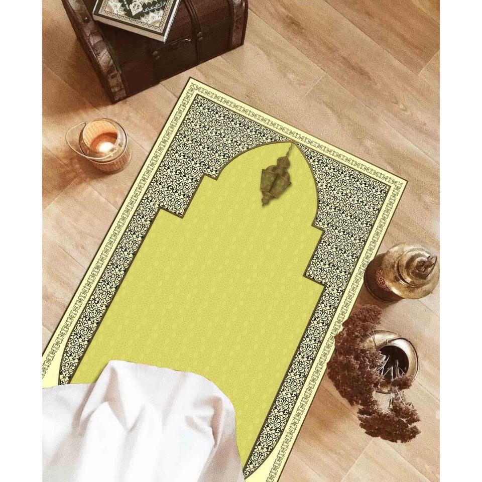 พรมละหมาดสีเหลือง: พรมละหมาดมุสลิมพิมพ์ลาย 3 มิติ พร้อมพรมขนนุ่ม