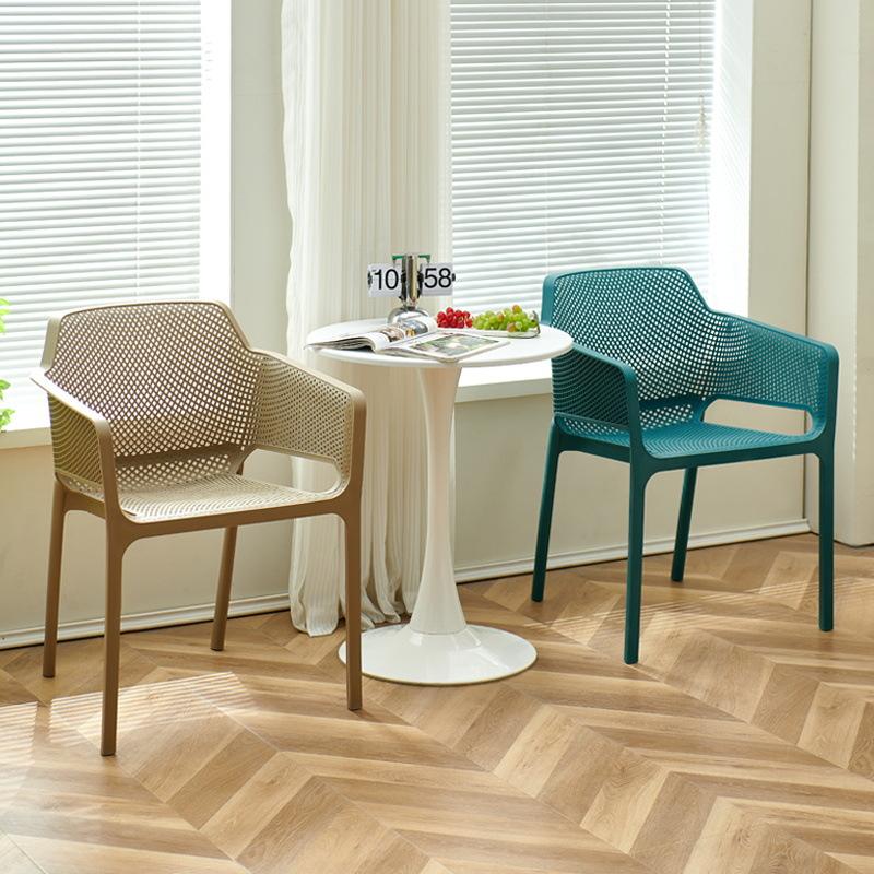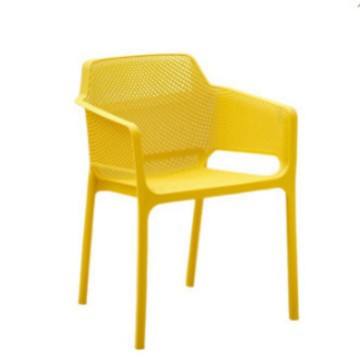เก้าอี้พลาสติกตาข่ายสีเหลืองสำหรับสวน เฟอร์นิเจอร์กลางแจ้ง เก้าอี้มีที่วางแขน สำหรับใช้ในลานบ้านหรือระเบียง