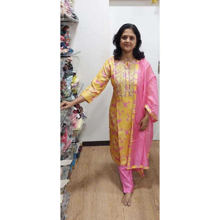 ชุดผ้ามัสลินสีเหลืองกับ dupatta
