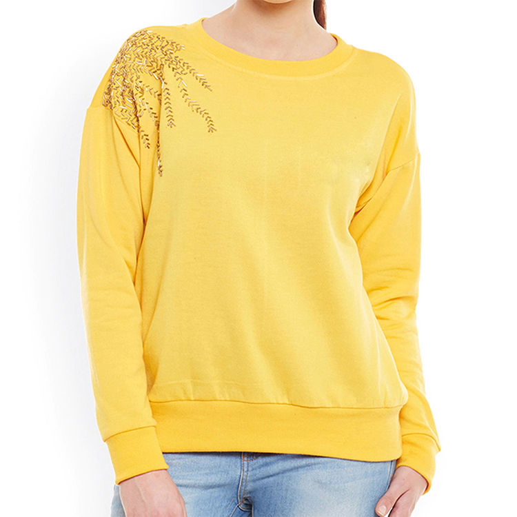 เสื้อสเวตเชิ้ตผู้หญิงสีเหลืองขายออนไลน์ สินค้าขายดี ผลิตภัณฑ์ยอดนิยม รับสกรีนโลโก้ตามสั่ง ระบายอากาศได้ดี ทนทาน