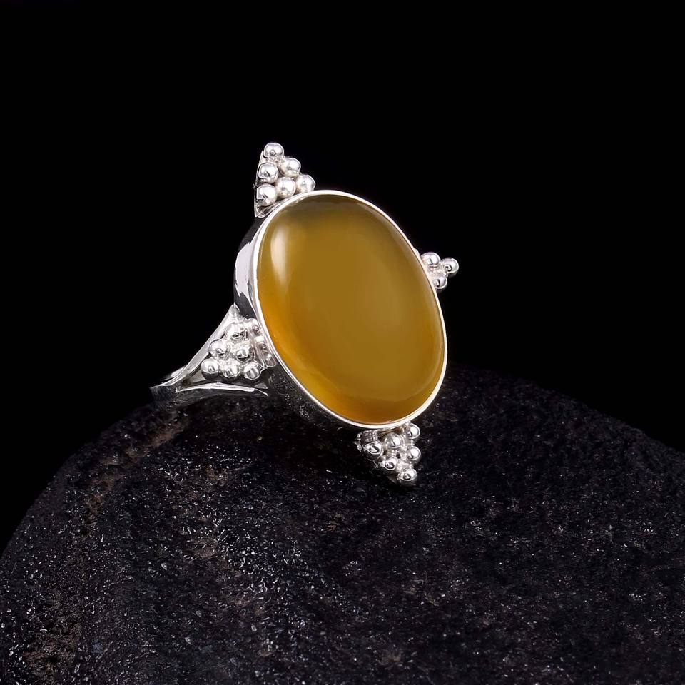 925หินโอนิกซ์สีเหลืองแหวน unisex สีเงินสเตอร์ลิงทำด้วยมือดีไซน์คลาสสิกอินเทรนด์สำหรับงานแต่งงานงานปาร์ตี้สำหรับ