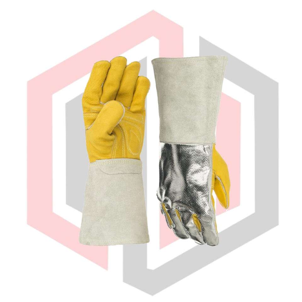 ถุงมือหนังวัวเคลือบอลูมิเนียมสีเหลือง ทนความร้อน เนื้อเรียบ สำหรับงานหนัก ถุงมือเชื่อม ทนต่อการฉีกขาด