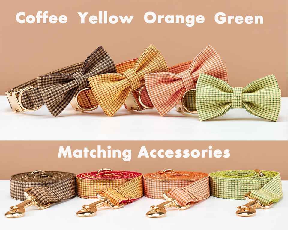 ชุดสายจูงผูกโบว์ปลอกคอสุนัขสีเหลืองลายสก๊อตส่วนบุคคลหัวเข็มขัดโลหะสลักชื่อสัตว์เลี้ยงแบบกำหนดเองของขวัญสำหรับลูกสุนัขวันเกิดที่ไม่เหมือนใครฟรี