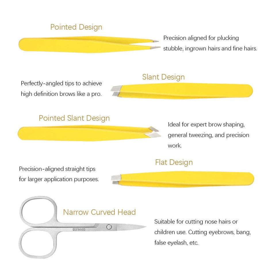 ชุดแหนบคิ้วสีเหลืองปลายแหลม4ชิ้นโลโก้ตามสั่งสำหรับผมคุดและถอนขนได้ดีที่สุด