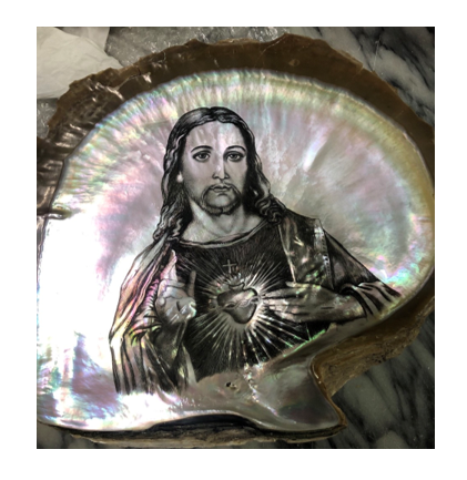 หอยมุกขัดเงาสีเหลืองขนาดใหญ่มีของตกแต่งเปลือกหอยเป็นของที่ระลึกงานแต่งงานปีใหม่