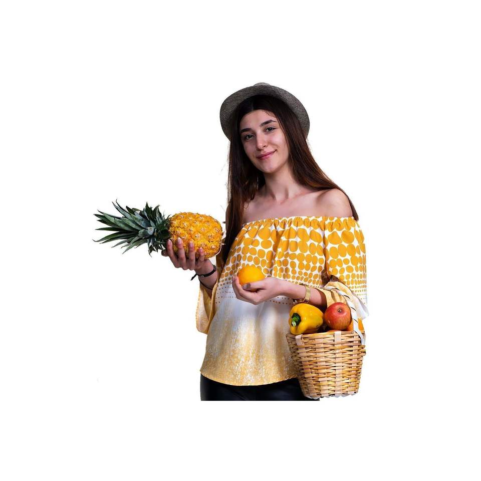เสื้อเบลาส์ฤดูร้อนแบบเปิดไหล่สำหรับผู้หญิง ลายจุดสีเหลือง แพ็คเกจเดี่ยว