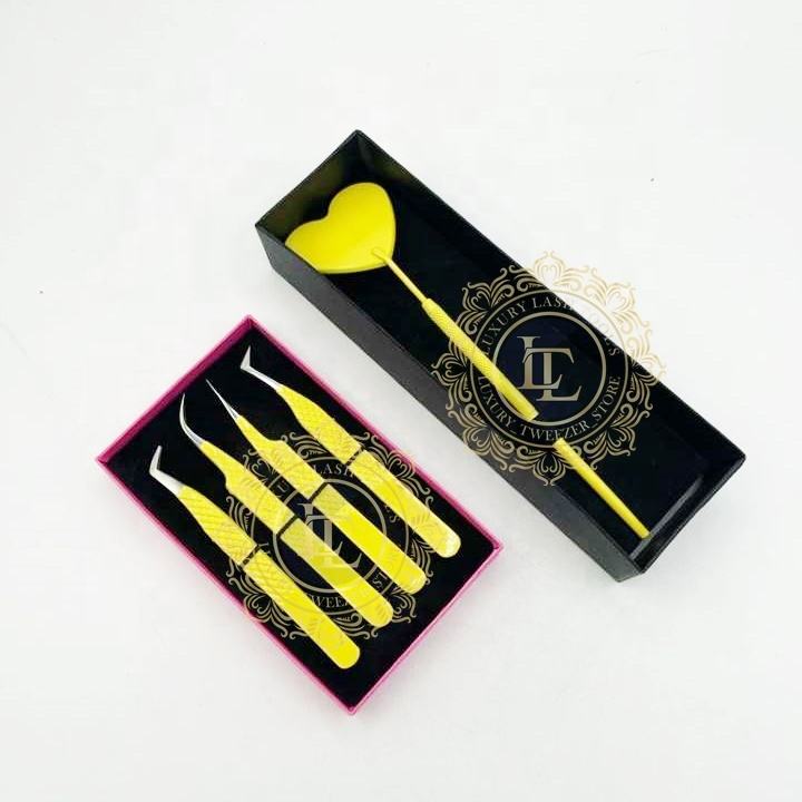 ที่หนีบขนตาทำจากสเตนเลสสตีลสีเหลืองเคลือบด้วยผงเคลือบฉลากตามสั่งปลายเงินรูปหัวใจ