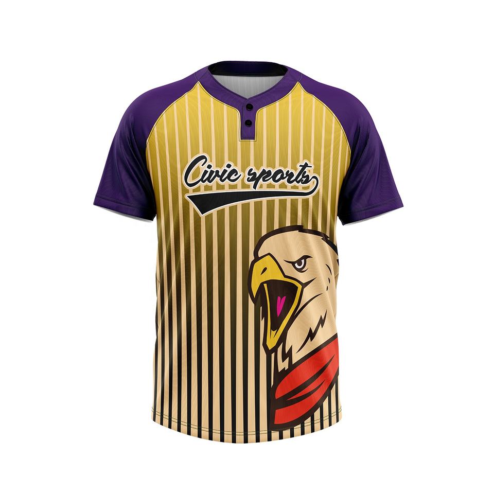 เบสบอลสีม่วงเหลือง2ปุ่มดีไซน์เสื้อทีมโลโก้แบบสองในหนึ่ง
