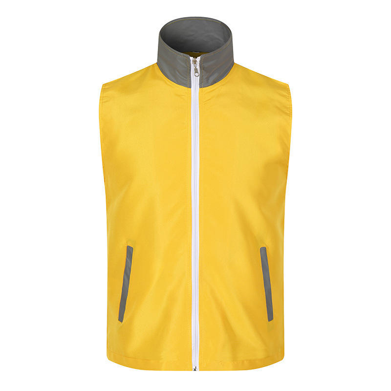 เสื้อกั๊กสะท้อนแสงสีเหลืองพร้อมซิปด้านหน้าและกระเป๋าข้างสำหรับสวมใส่เพื่อการพักผ่อน