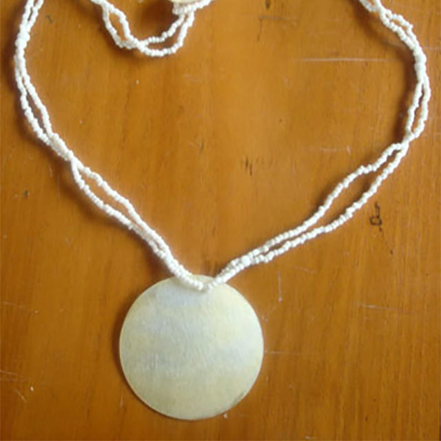 ชื่อหรือคำ:สร้อยคอเปลือกม็อบสีเหลืองพร้อมลูกปัด