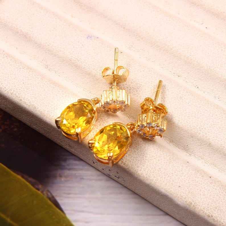 Yellow Sapphire Earrings Unique Gemstone 925 Sterling Silver Earrings