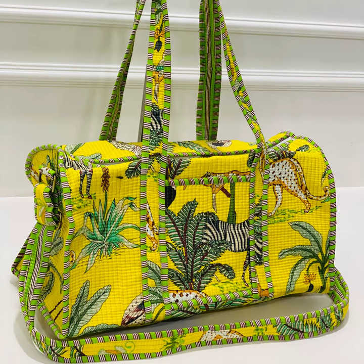 กระเป๋าเดินทางผ้าฝ้ายพิมพ์ลายดอกไม้สีเหลืองขนาดเล็ก ดีไซน์หรูหราทันสมัย ปิดด้วยซิปด้านบน เป็นมิตรกับสิ่งแวดล้อม กันน้ำได้