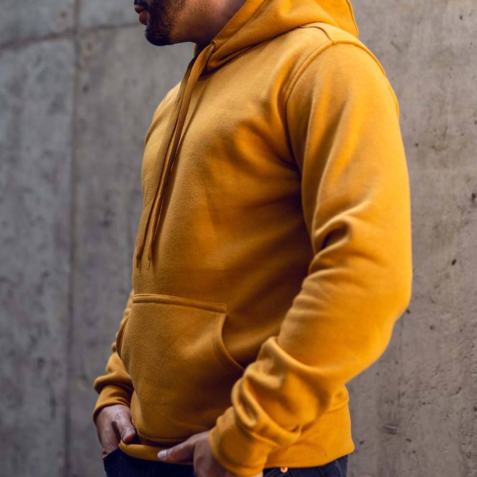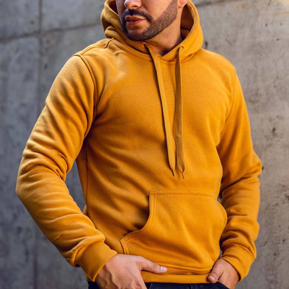 สีเหลืองผู้ชายแข็งผ้าฝ้ายเฮฟวี่เวทเสื้อสวมหัวมีฮู้ด