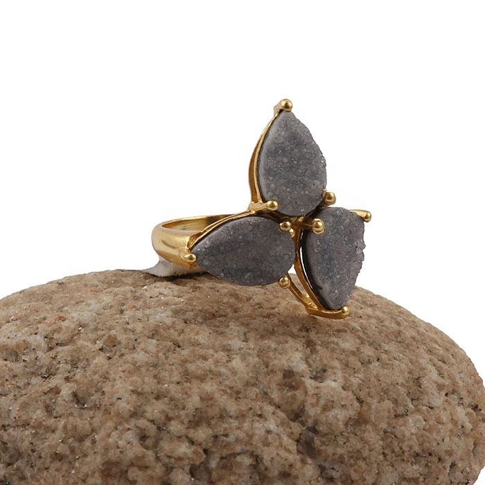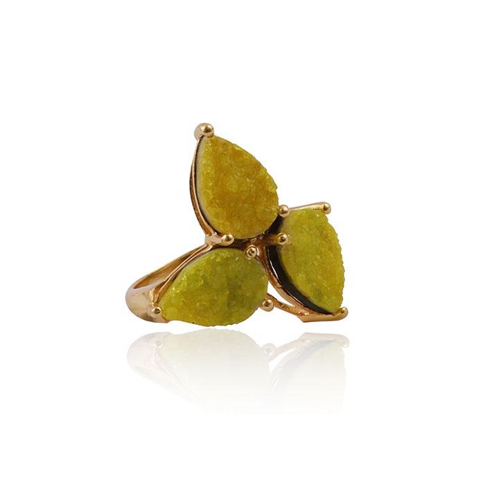 แหวนพลอยดรูซี่น้ำตาลเหลืองชุดง่ามชุบทองทำด้วยมือรูปทรงลูกแพร์เจียระไนสไตล์คลาสสิกสำหรับเครื่องประดับหมั้น