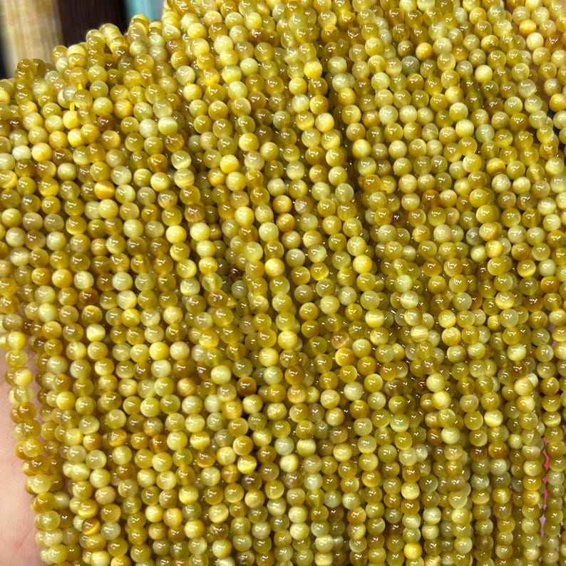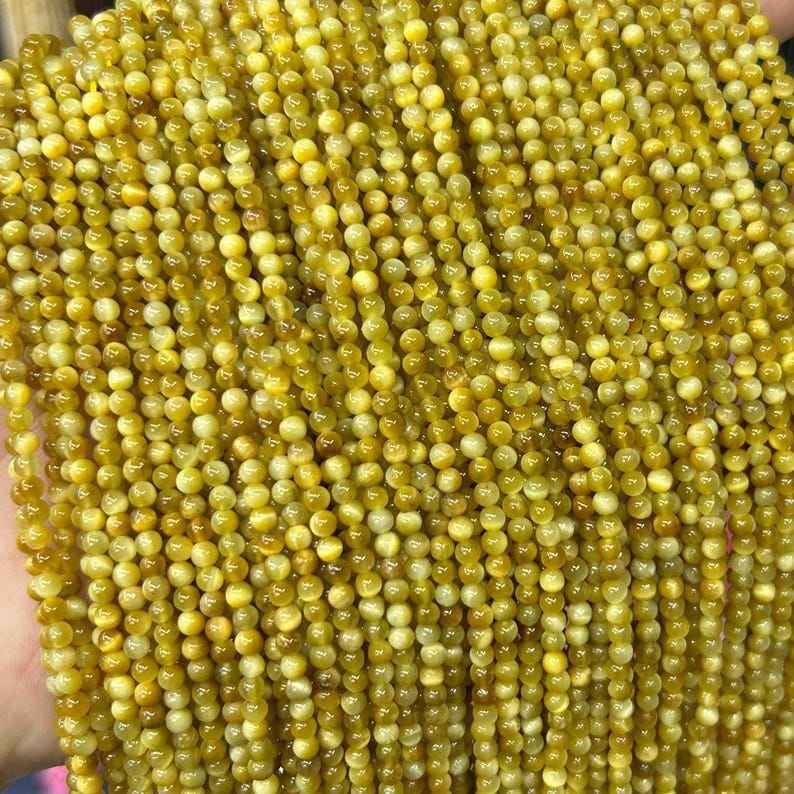 ลูกปัดหินตาเสือสีเหลืองทรงกลมธรรมชาติ พร้อมเอฟเฟกต์เปลี่ยนสี สำหรับทำเครื่องประดับ DIY งานฝีมือ ขายส่ง