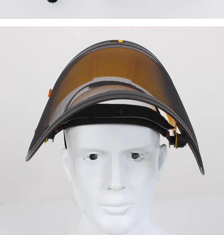 แผ่นบังหน้าตาข่ายลวดสีเหลืองสำหรับเครื่องตัดหญ้าป้องกันการกระเด็นและป้องกันการกระแทกหน้ากากตัดหญ้า