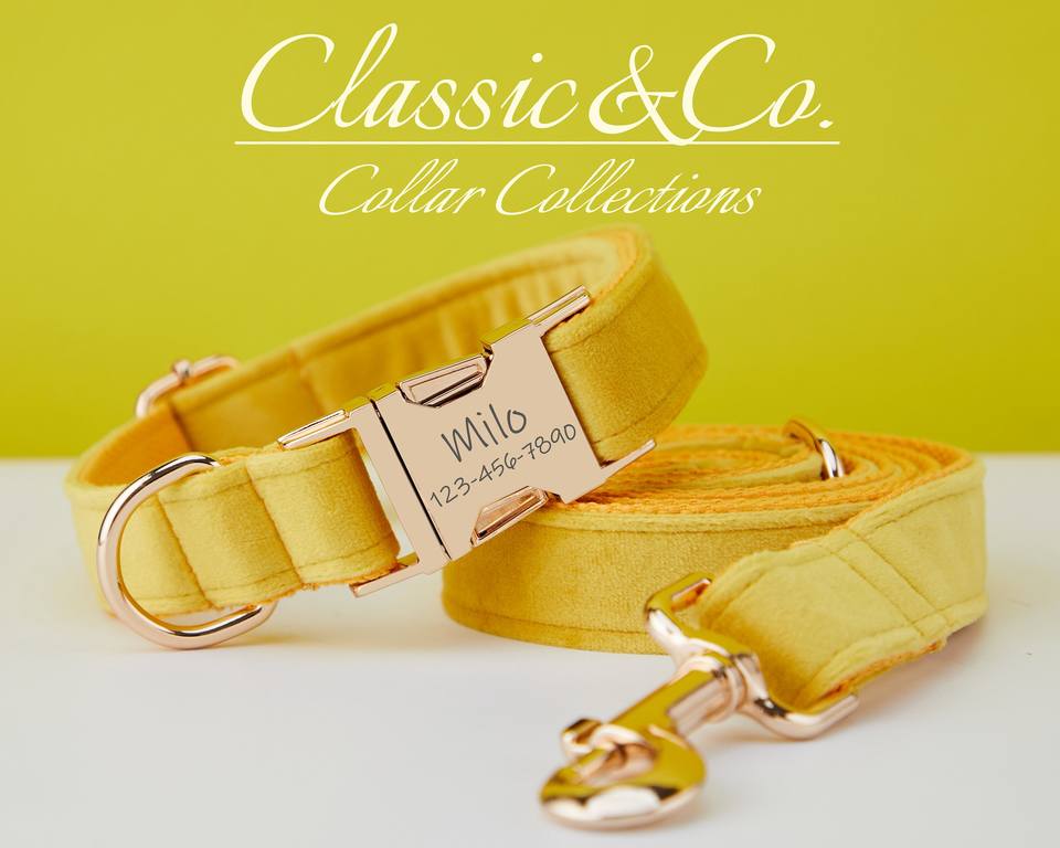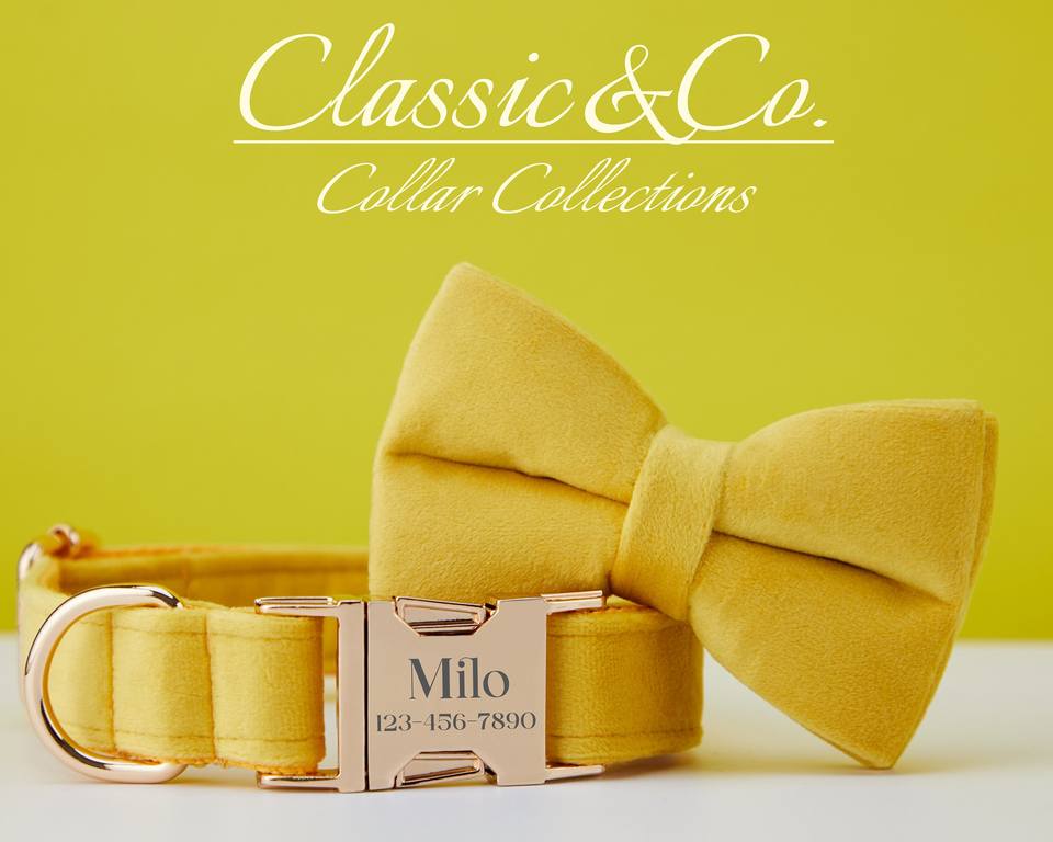 Yellow Veet Personalized Dog Collar Bow Tie Leash Set,Custom Engraved Pet Name Metal Buckle,Orange Wedding Puppy Neckwear,FREE
