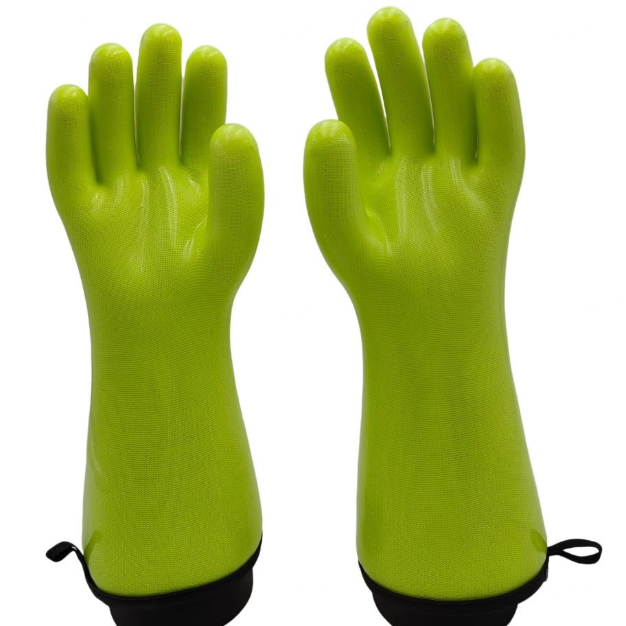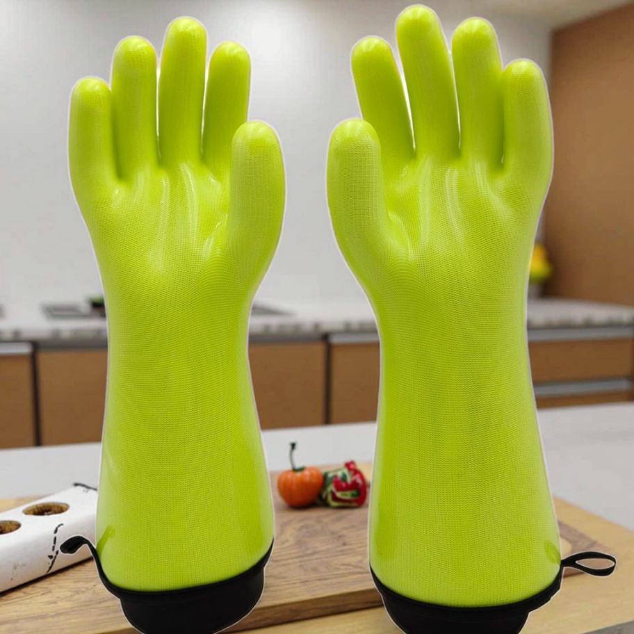 ถุงมือกันความร้อนสีเหลืองแบบกันน้ำ พิมพ์ลายซิลิโคน ถุงมือป้องกันความร้อนสำหรับงานครัว เกรดสำหรับอาหาร
