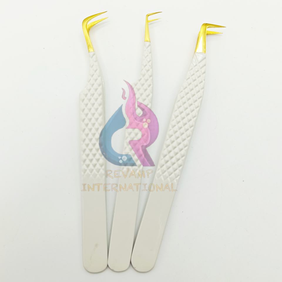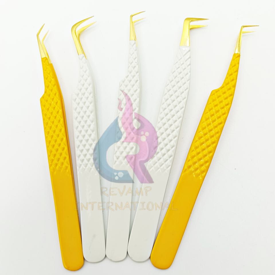 แหนบหนีบขนตาแบบแยกปลายโค้งสีเหลืองและสีขาวทำจากสเตนเลสแหนบสำหรับบูต90/45องศา